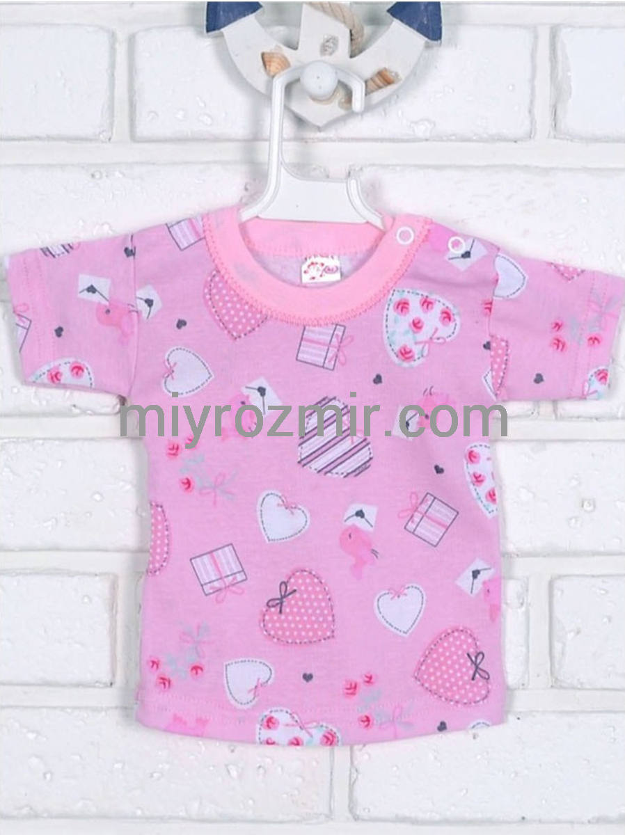 Татошка 06601 рожева бавовняна футболка з сердечками на 2 кнопках по лівому плечі