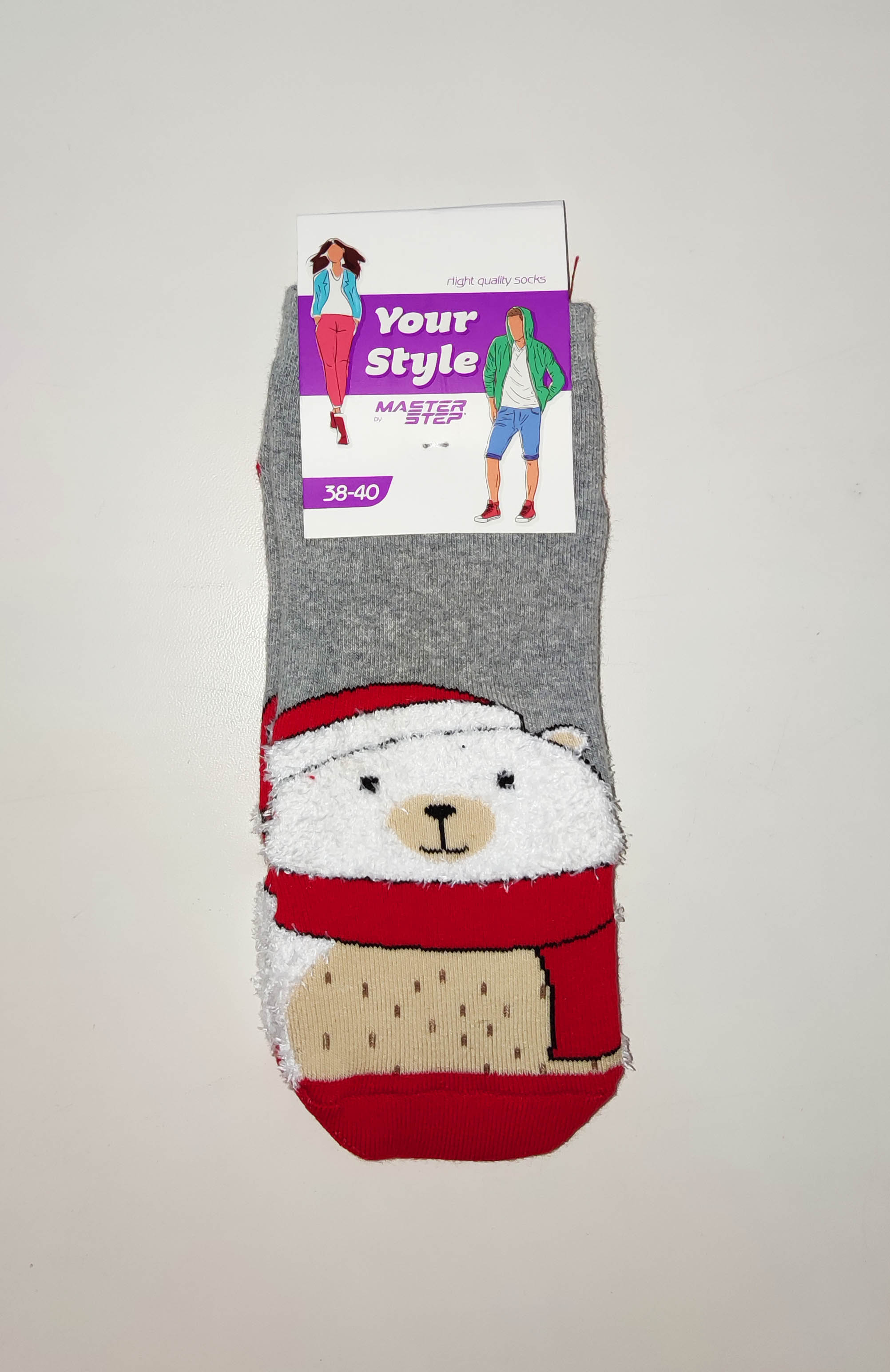 Master Step 3511 Жіночі махрові шкарпетки до нового року з аплікацією мохнатий ведмедик фото 4