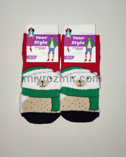 Master Step 3511 Жіночі махрові шкарпетки до нового року з аплікацією мохнатий ведмедик